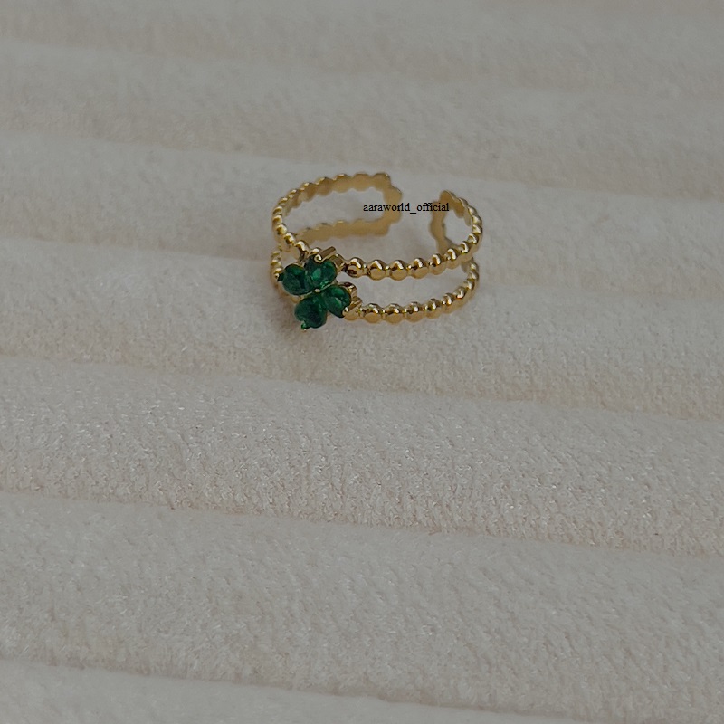 Green Crystal Flower Adjustable Ring